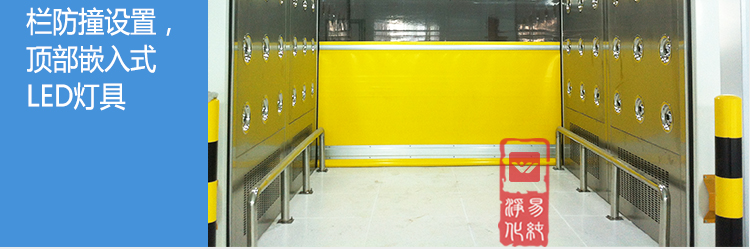 雙門互鎖風(fēng)淋室快速卷簾門,專門為潔凈凈化車間使用,防止室內(nèi)外的空氣相互流通以及除去物體表面的灰塵,避免將污染源帶入到潔凈車間中去??焖匍T為空間狹小的物流通道設(shè)計(jì),內(nèi)置型馬達(dá)不占用安裝空間,滿足特殊場(chǎng)地需要。門簾由較輕的織物及鋁制抗風(fēng)肋條組成,提升速度快、安全可靠,出入方便,防蟲,防塵。