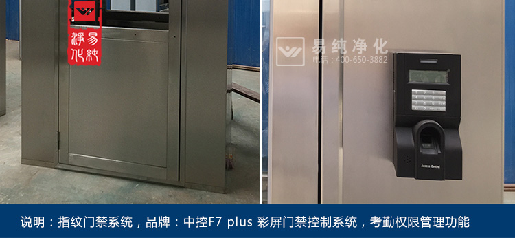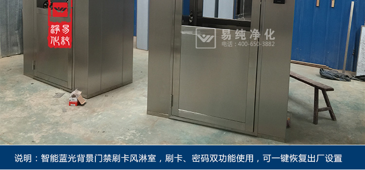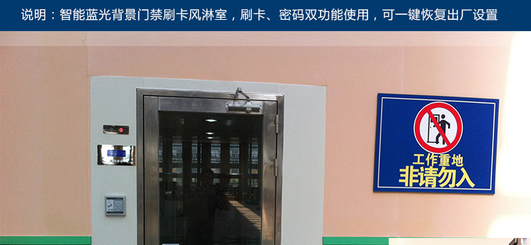 門禁刷卡控制風淋室,專門管理嚴格的車間設置的系統(tǒng)。本系統(tǒng)可有效管理車間內(nèi)部人員的有效出入和考勤;可分別設置“密碼輸入”、“指紋考勤”、“刷卡進入”等形式。感應控制風淋室廣泛適用于保密性較高的風淋室車間外門,人員進入前需要進行刷卡等身份認證。工人出車間時不需要刷卡,只需要按動內(nèi)部的彈跳單向開關即可實現(xiàn)內(nèi)部解鎖。