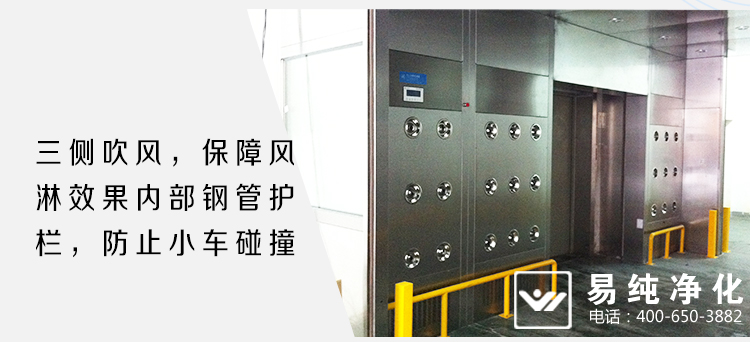 貨淋室門電子互鎖,可以兼起氣閘室的作用,防未被凈化的空氣進(jìn)入潔凈室,達(dá)到有效的凈化效果,經(jīng)高效過濾器過濾后的潔凈氣流由可旋轉(zhuǎn)噴嘴從各個方向噴射至物體表面,有效而迅速清除塵埃粒子,帶有塵埃粒子的空氣再由初、高效過濾器過濾后重新循環(huán)到風(fēng)淋區(qū)域。