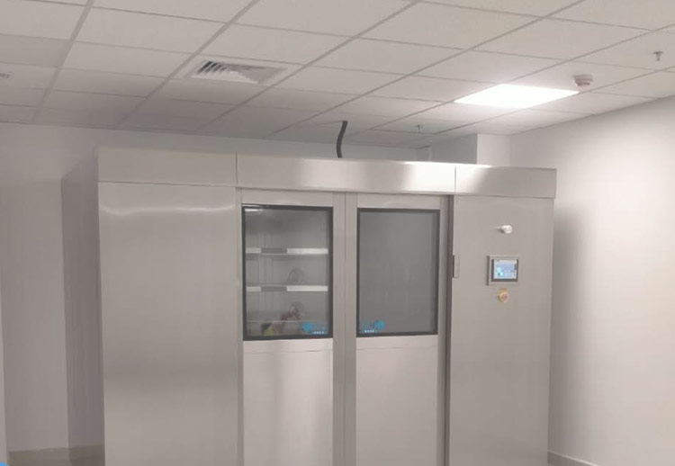 工作原理介紹:檔案消毒除塵室采用全不銹鋼材質(zhì)制作,進門為自動感應雙側(cè)是移門,人員觸碰按鈕后開門,將托盤送入到除塵室內(nèi),人員退出后關(guān)閉自動門,當門關(guān)閉后,除塵室內(nèi)啟動風淋除塵,此時自動門鎖閉,工作報警指示燈顯示為紅色狀態(tài),門無法打開。當除塵時間到達后,報警指示燈顯示為綠色并發(fā)出報警聲音,門為可開狀態(tài)。人員取出托盤,將之送入到庫房內(nèi)進行保存。