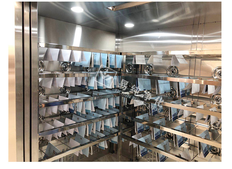 5)工作指示燈指示工作狀態(tài),時間未到,門無法打開;達到設定的時間后,指示燈變綠,可選擇繼續(xù)長時間消毒或開門取出檔案車。